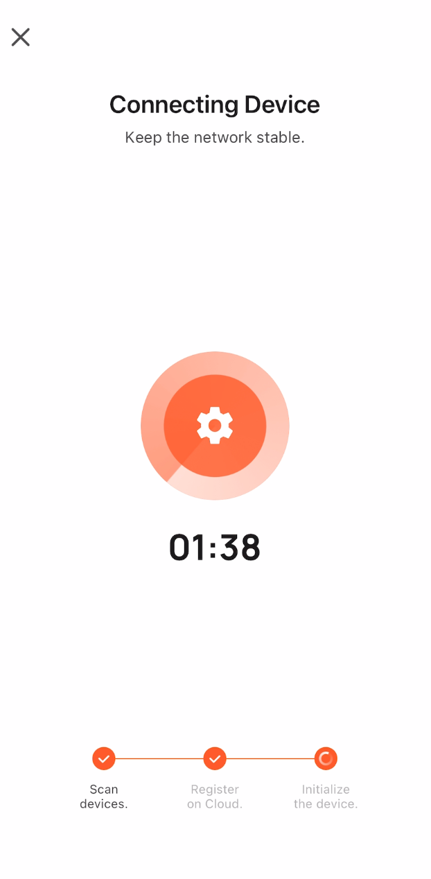 The next screen will show a countdown while you're waiting for the device to connect. Once it's been successfully connected, the screen will show a success message and a green tick.